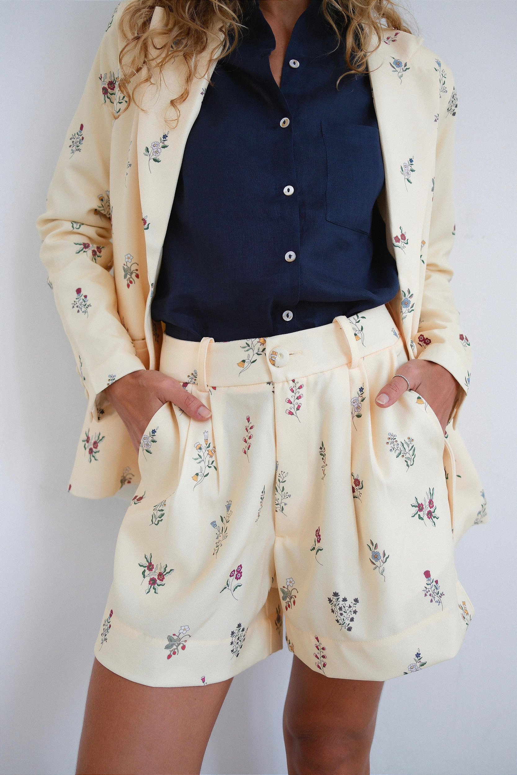Um short quase bermuda, bem comprimindo! Nessa estampa no mais lindo amarelo manteiga, com um floral delicado, com a melhor carinha vontade! Para dias mais quentes… não queremos usar outra coisa.
